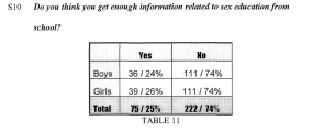 ¾ of students also expressed that they do not get enough information related to sex education from school. It is important to note however, that since this publication was released, advancements have been made in this regard, which is one of the things our own study aims to explore.